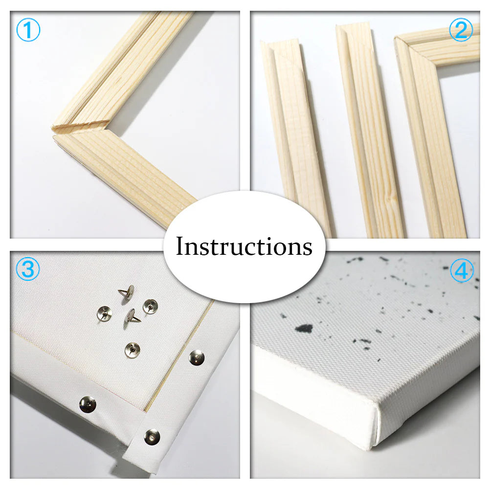 En quelques minutes, assemblez votre châssis, tendez la toile et accrochez votre œuvre au mur.