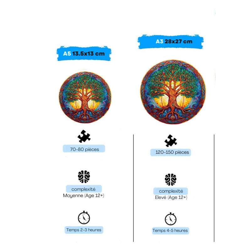 Plongez au cœur du symbole universel de la vie avec ce puzzle en bois – Arbre de Vie, une œuvre inspirée de la nature, de la sagesse et de la connexion entre tous les êtres. Ses branches et racines entrelacées rappellent la continuité de la vie et la force du lien entre la terre et le ciel.